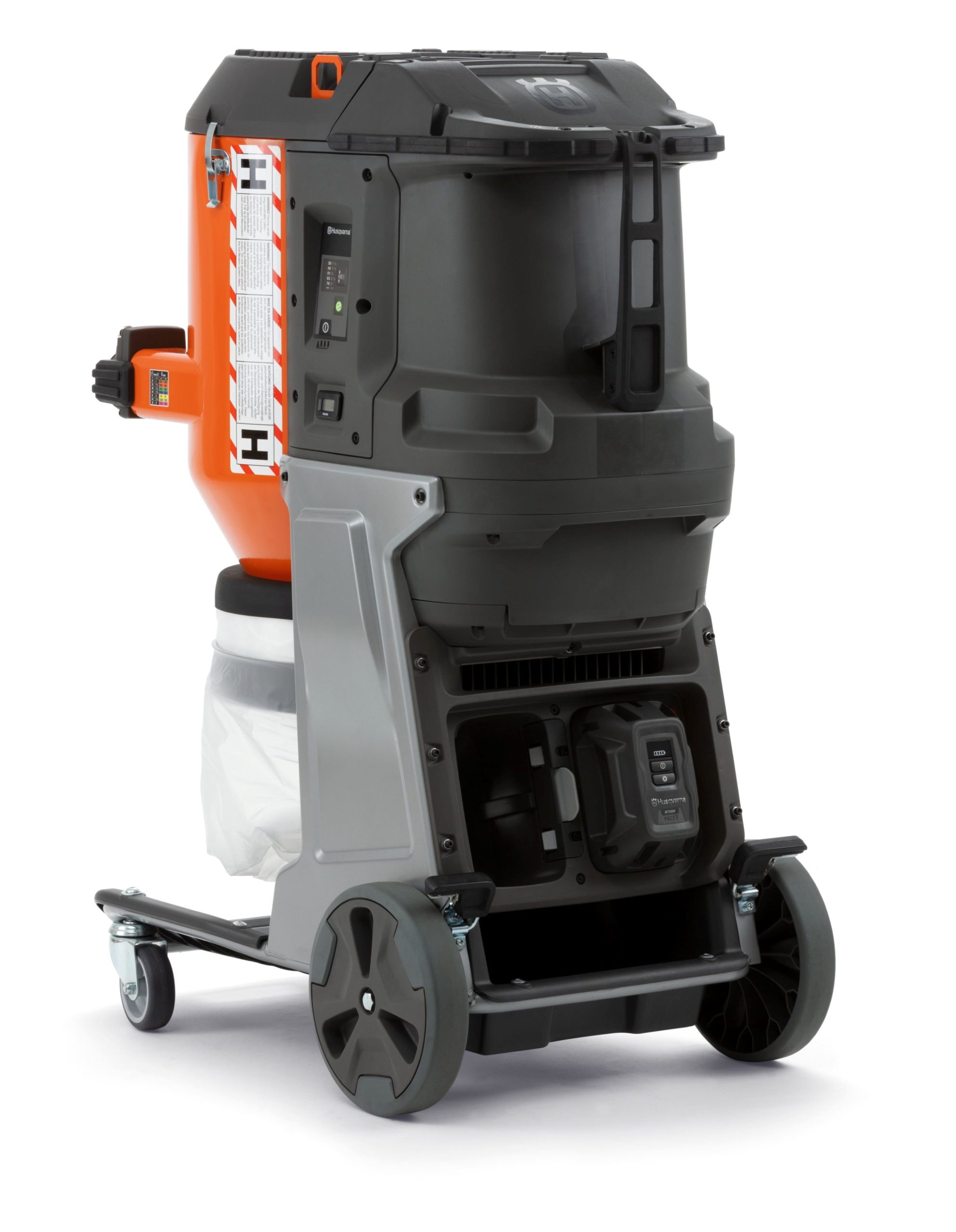 This versatile HEPA dust extractor is powered by Husqvarna’s own 94 V PACE battery system. It is designed for use with larger hand-held power-tools, floor and hand grinders, shotblasters and scarifiers. Ideal to use when no or insufficient grid power is available. Its performance and sturdiness make the DE 120 H PACE ideal for demanding, heavy-duty applications. DE 120 H PACE is compact and easy to transport, yet powerful. It features a user-friendly HMI and an e-flow function that automatically adjusts air flow while securing high runtime from the batteries. It also features embedded connectivity allowing you to swiftly monitor location, service and filter status along with other valuable usage data.