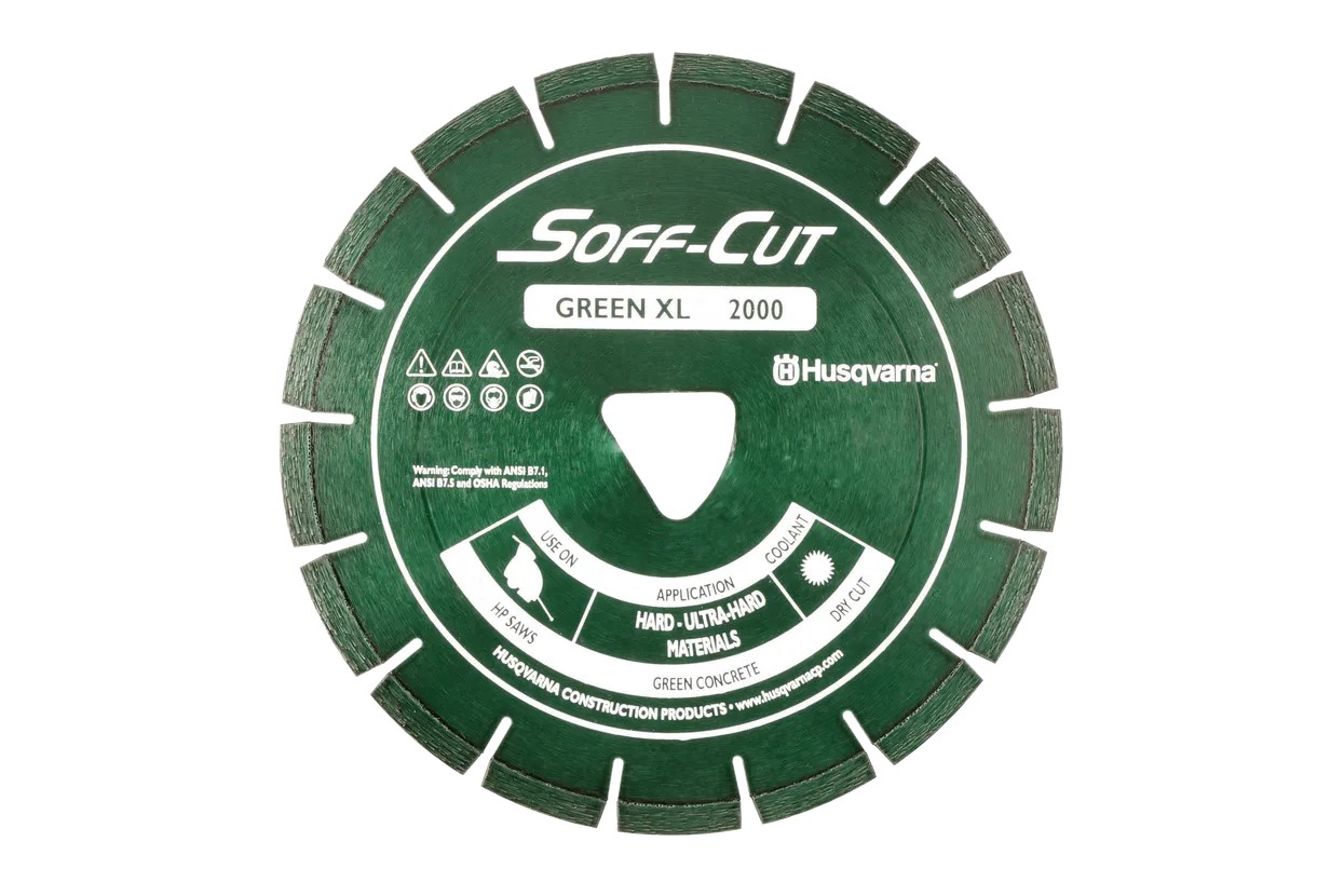 Husqvarna’s range of Soff-Cut® XL diamond blades is specially designed for efficient sawing of contraction joints in newly poured concrete slabs – a.k.a. cutting in the concrete’s “green zone”. This method reduces the risk of random cracks in the cured concrete.