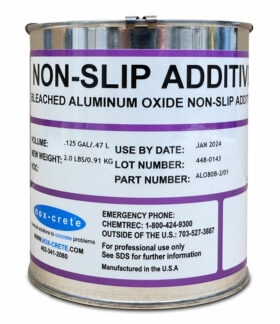 Our Non-Slip Additive consisting of a finely ground Bleached Aluminum Oxide that is broadcast and back-rolled into the last coat of sealer for improved slip resistance. Non-Slip Additive is recommended for pool decks, walkways, steps, patios and garage floors. It is intended for exterior concrete floors and can be used in either water or solvent-based sealers.